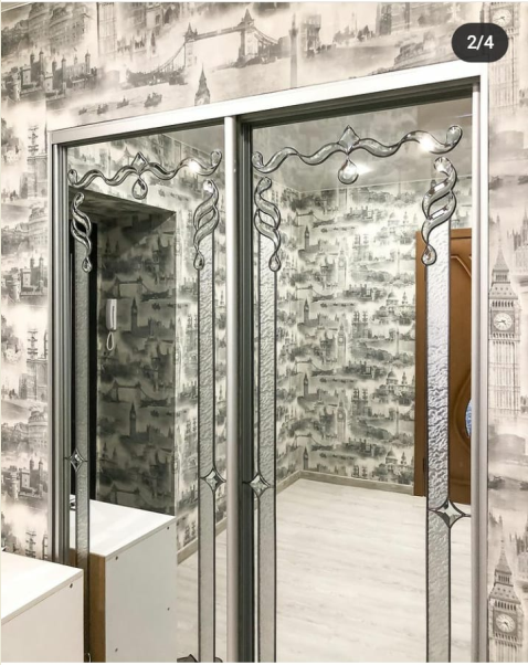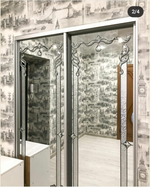 Посредством раздвижных конструкций можно визуально обрамить окно сложной формы или увеличить по высоте дверной проем.