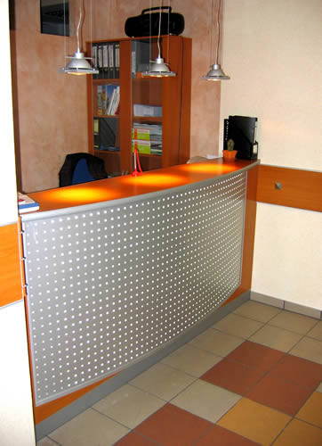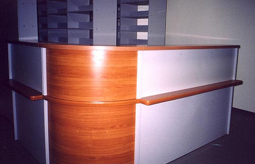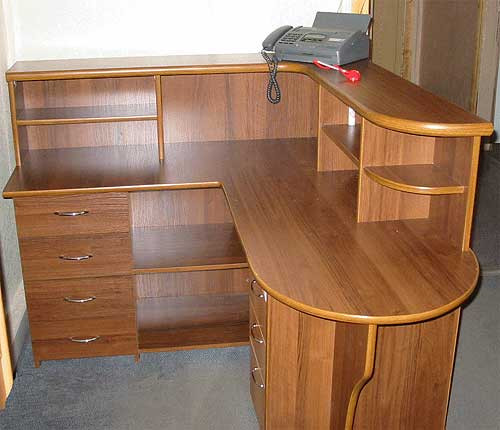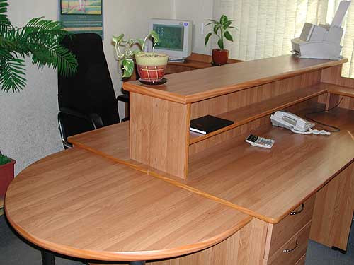 Стойки ресепшн — многофункциональные модульные комплекты, соединяющие в себе несколько рабочих мест: рабочий и переговорный стол, шкаф, тумбу. При входе посетитель сразу обращает внимание на стойку, она является лицом любого офиса.
