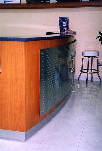 Стойки рецепции («стойка администратора», «ресепшн») — данный вид торговой мебели обычно выделяют, хотя его можно отнести к категории отдельно стоящего оборудования.