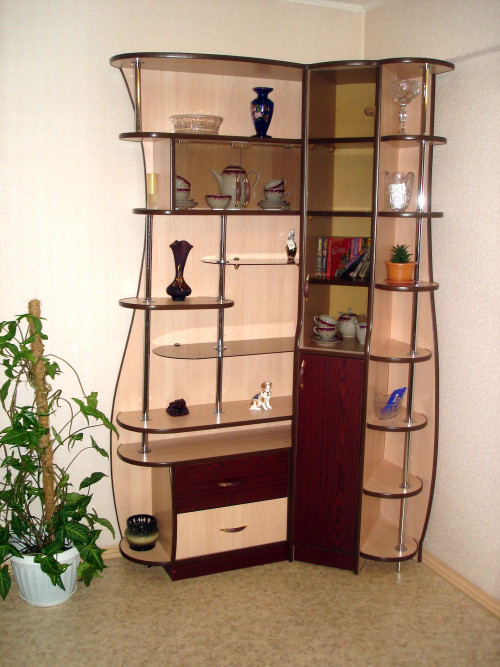 Такие шкафы отличаются своей необычной формой и способны внести оригинальность и новизну в любой интерьер. По функциональным возможностям они не имеют отличий от остальных видов.